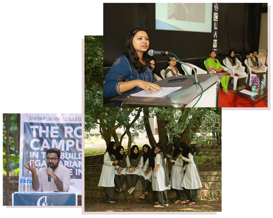 Dayapuram Arts and Science College for Women is a higher education center for women empowerment and intellectual growth established in 2002. Affiliated with the University of Calicut, our college believes in furthering the foundational values of social equality, cultural justice and communal harmony through teaching, research and collective activities.